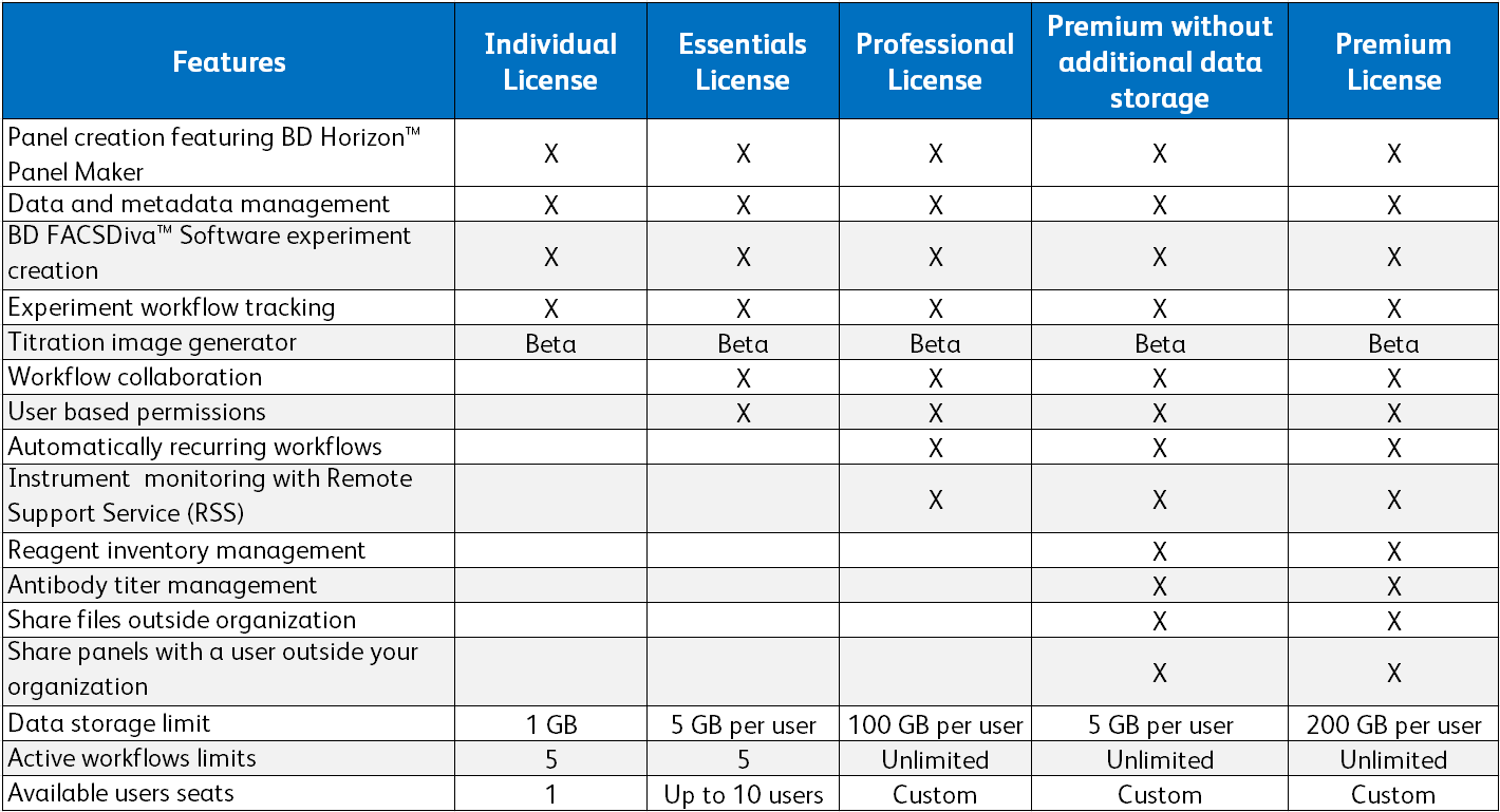 To add seats to existing BD® Research Cloud licenses or for questions about upgrading to a Professional or Premium group license, contact flowjooffice@bd.com.
