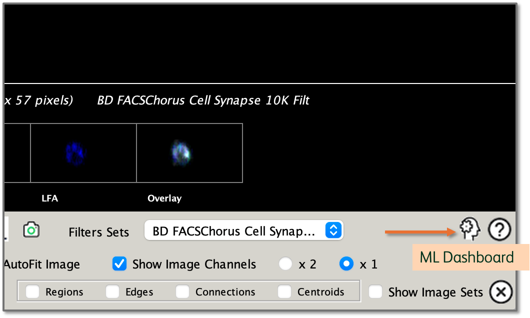To access the ML dashboard, open a CellView Lens node on any population. The ML dashboard is the gear-head icon in the bottom righthand corner of the CellView window: