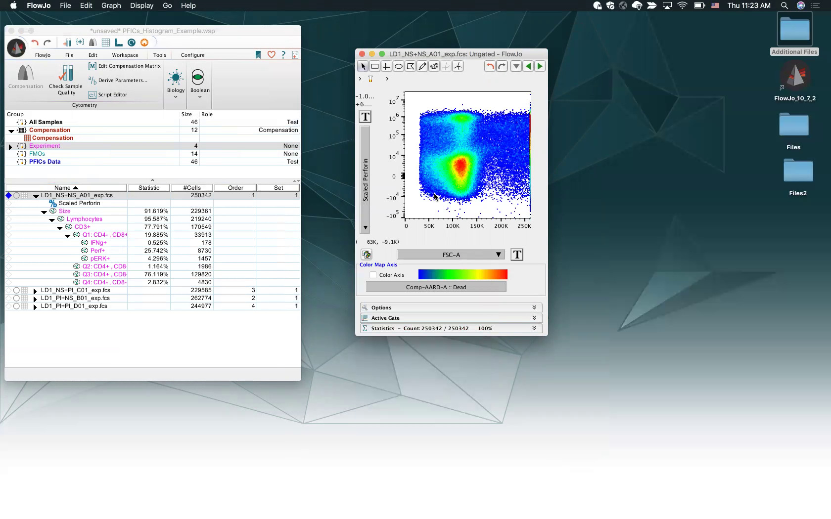 Once created, derived parameters behave like parameters that were collected at acquisition. You can display them, gate on them, calculate statistics on them, and display them on plots within the layout editor.