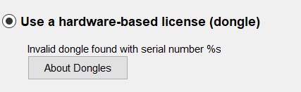 Error Message = Invalid dongle found with serial number %s