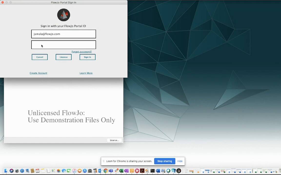 After downloading FlowJo you will need to enter its license information. If no license information is provided, FlowJo will only load specially enabled demonstration data files. To check license status of FlowJo, please visit the License section of FlowJo’s preferences. To obtain a trial 30-day serial number so that you can try FlowJo using your own data simply fill out the trial license form