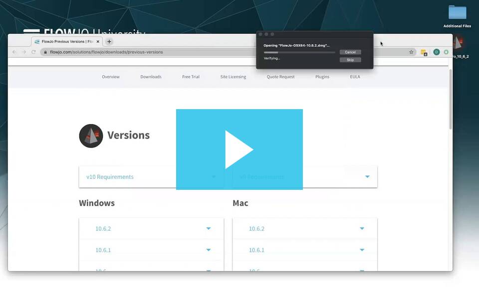 The Mac OS will always name the FlowJo application “FlowJo”. Users can rename the application to something different each time they install to keep multiple versions of the “FlowJo” application.