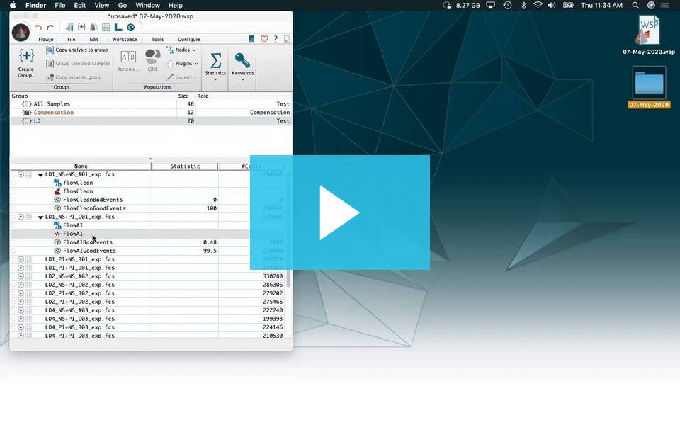 The flowAI plugin is able to perform an automatic quality control on your FCS data. After starting the plugin, flowAI will evaluate three different properties: flow rate, signal acquisition, and dynamic range. The quality control performed by the flowAI plugin enables the detection and removal of anomalies. This plugin will produce two new populations named, BadEvents and GoodEvents, further gating should be continued from the GoodEvents population.