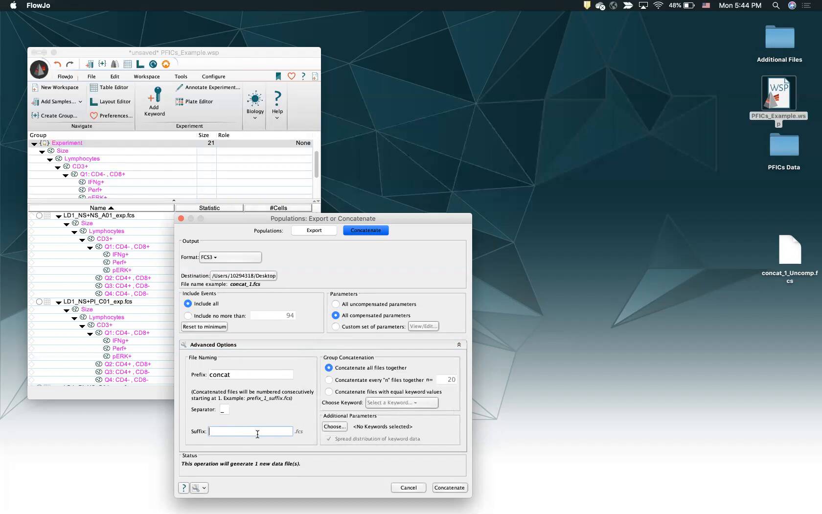 Concatenating (Merging) Data into a new FCS or CSV file.