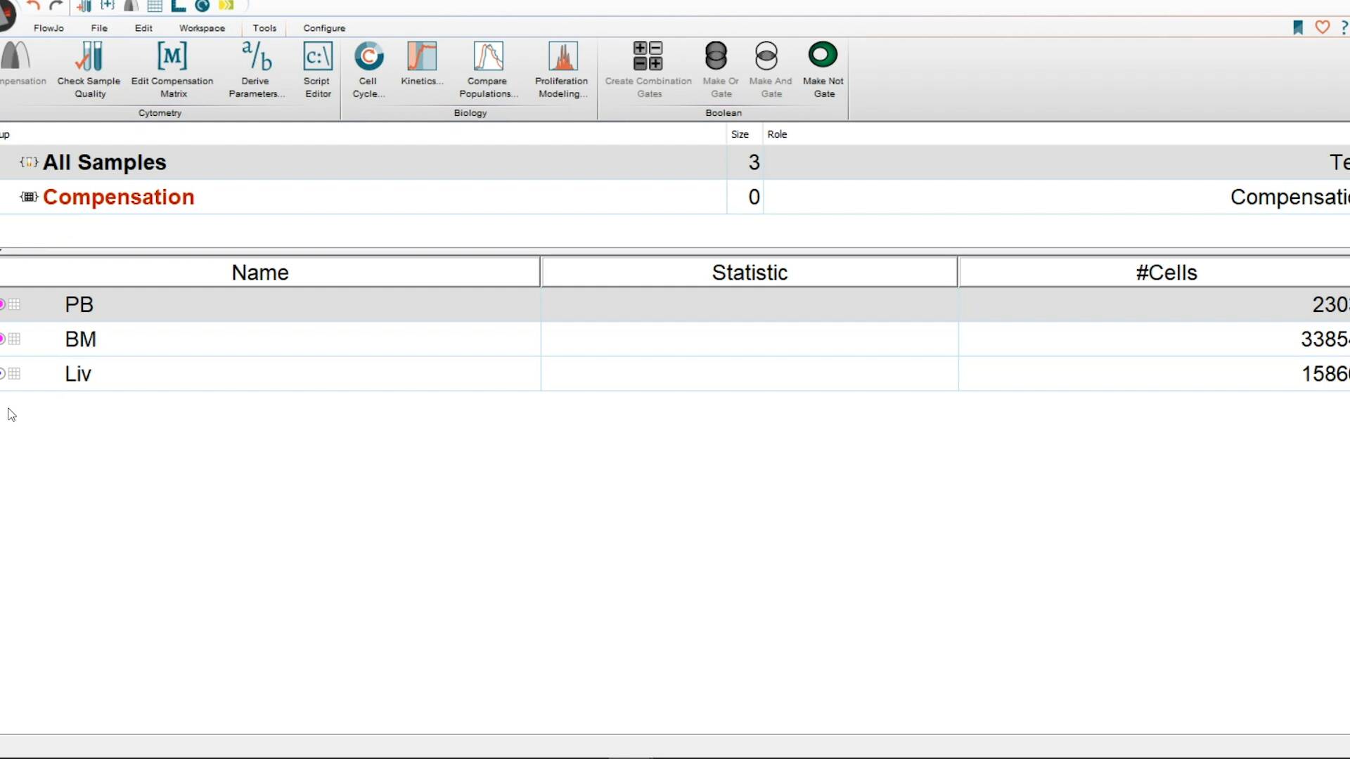 Spikes or other anomalies affecting the quality of your data are extracted from the FCS files by FlowJo. FlowJo scans intensity vs Time looking for anomalies in each of the present parameters. Briefly, several bins are averaged together generating a histogram of the entire acquisition. The modal peak of the highest bin for each parameter is measured against a median (representing the central tendency of the entire samples’ events). The greater the distance the modal peak from the median, the more severe the signal spike is. FlowJo displays the severity of signal spike in the circle badge, using the warmer colors and a larger fill to indicate greater severity. You can also view the sample quality check graphically in the Inspect menu.