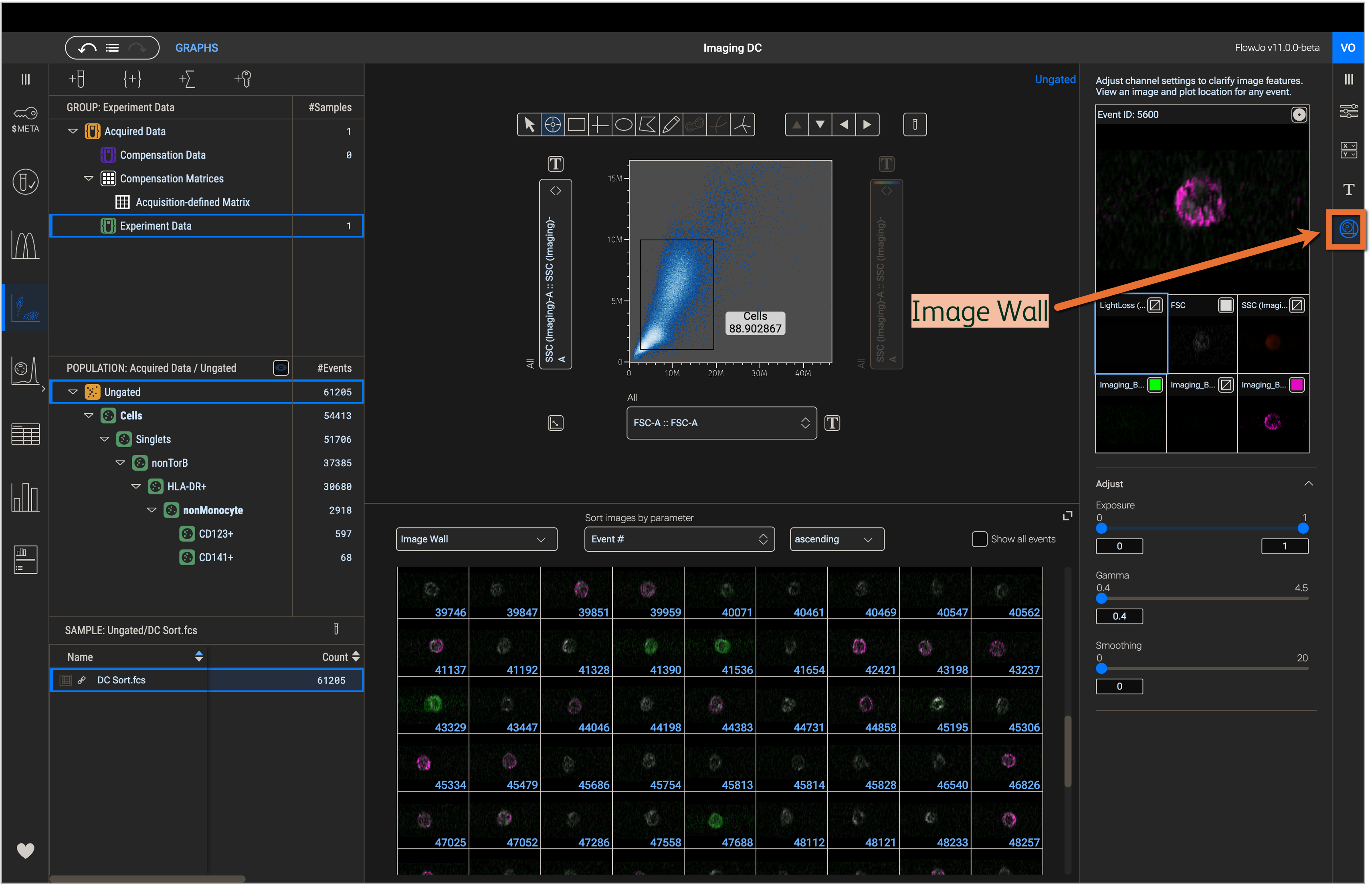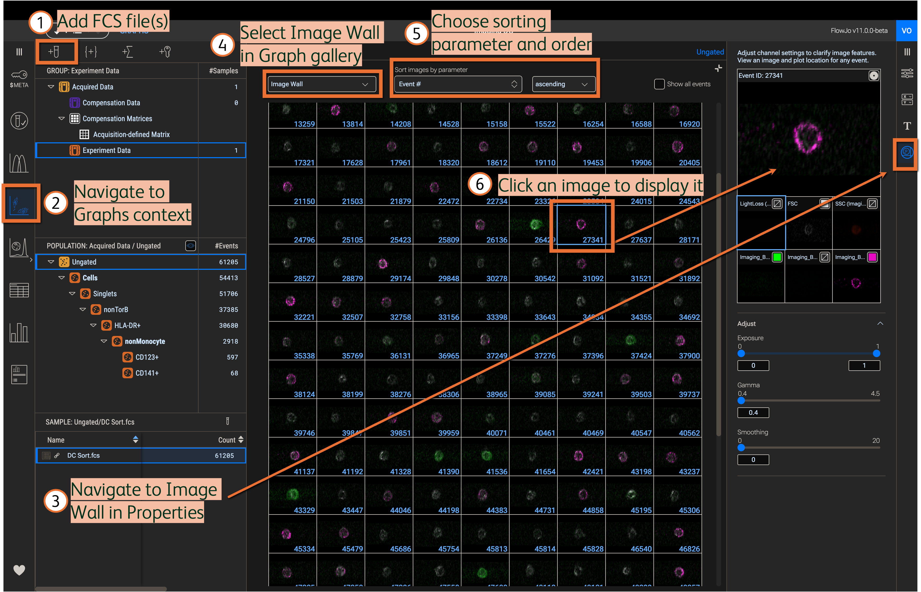 FlowJoTM Software allows interactive exploration of FCS files and associated image files collected using the BD FACSChorus™ acquisition software. In FlowJoTM v10, this is possible through the BD CellView™ Lens plugin. FlowJoTM v11, however, has built-in support for image files through the Image Wall in the Graphs Context (Figure 1).