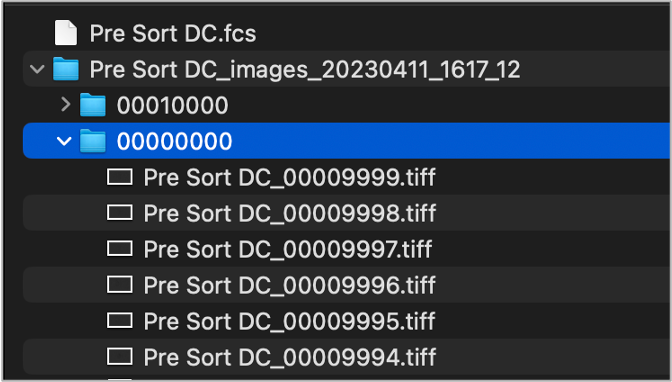 Figure 2. Typical folder structure after extracting TIFFs from CVW
