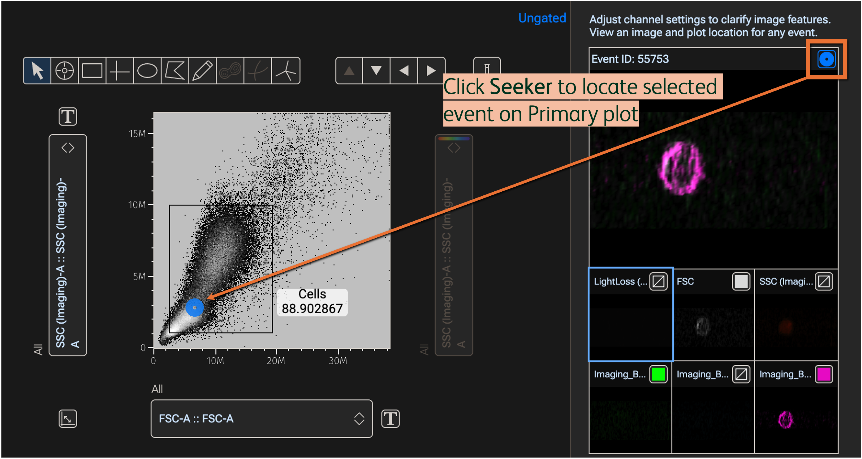 Figure 6. Locate cells in the Primary plot using the Seeker