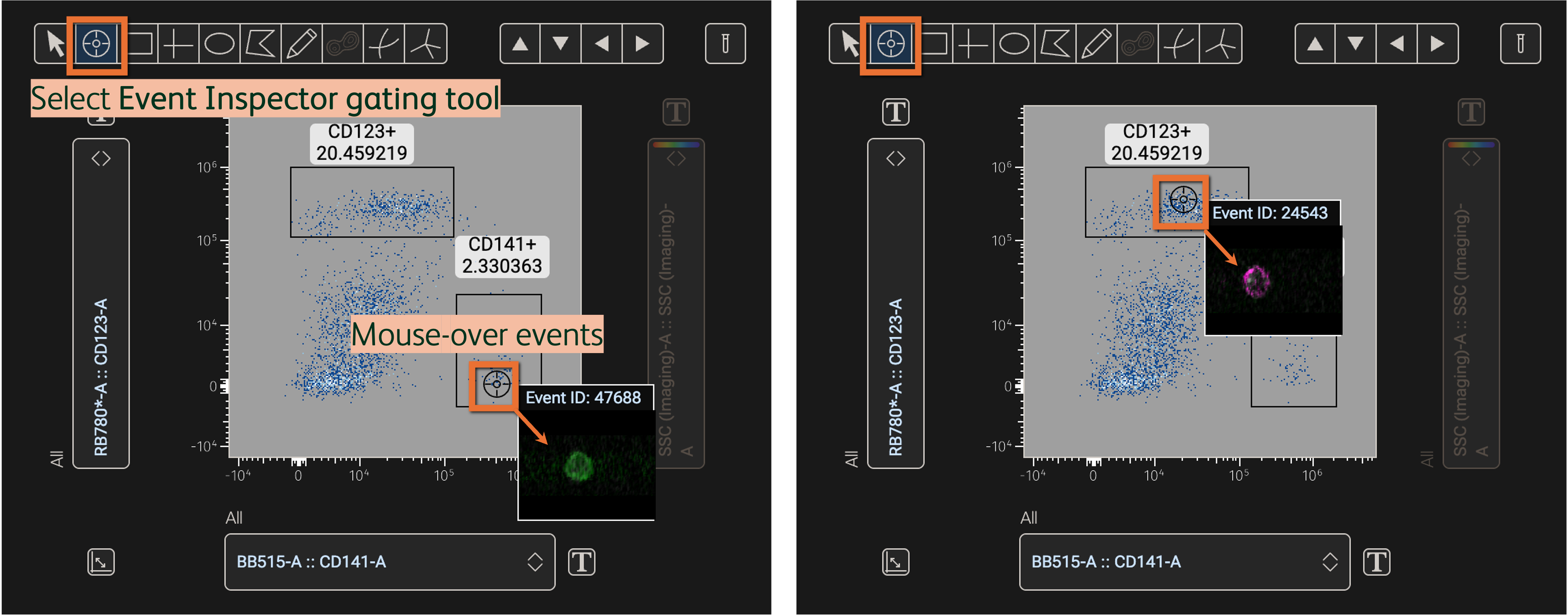 In the Primary plot, use the Event Inspector in the gating tools to mouse-over events and display linked images within the Primary plot (Figure 7).